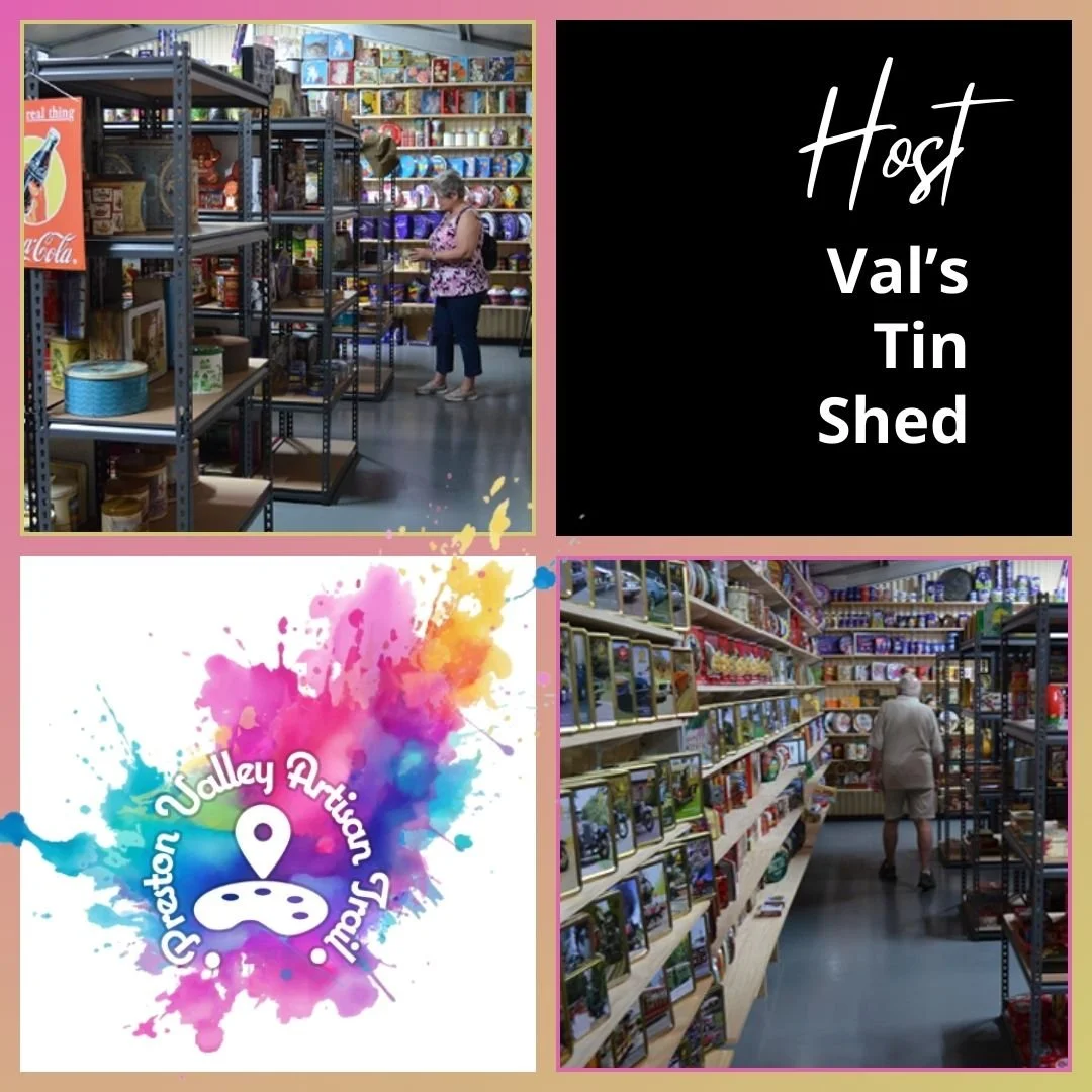 Welcome to Val and Brad's Tin Shed, a unique gem on the Preston Valley Artisan Trail. For over 20 years, Val has passionately collected more than 12,000 tins of all kinds, each with its own story and history.